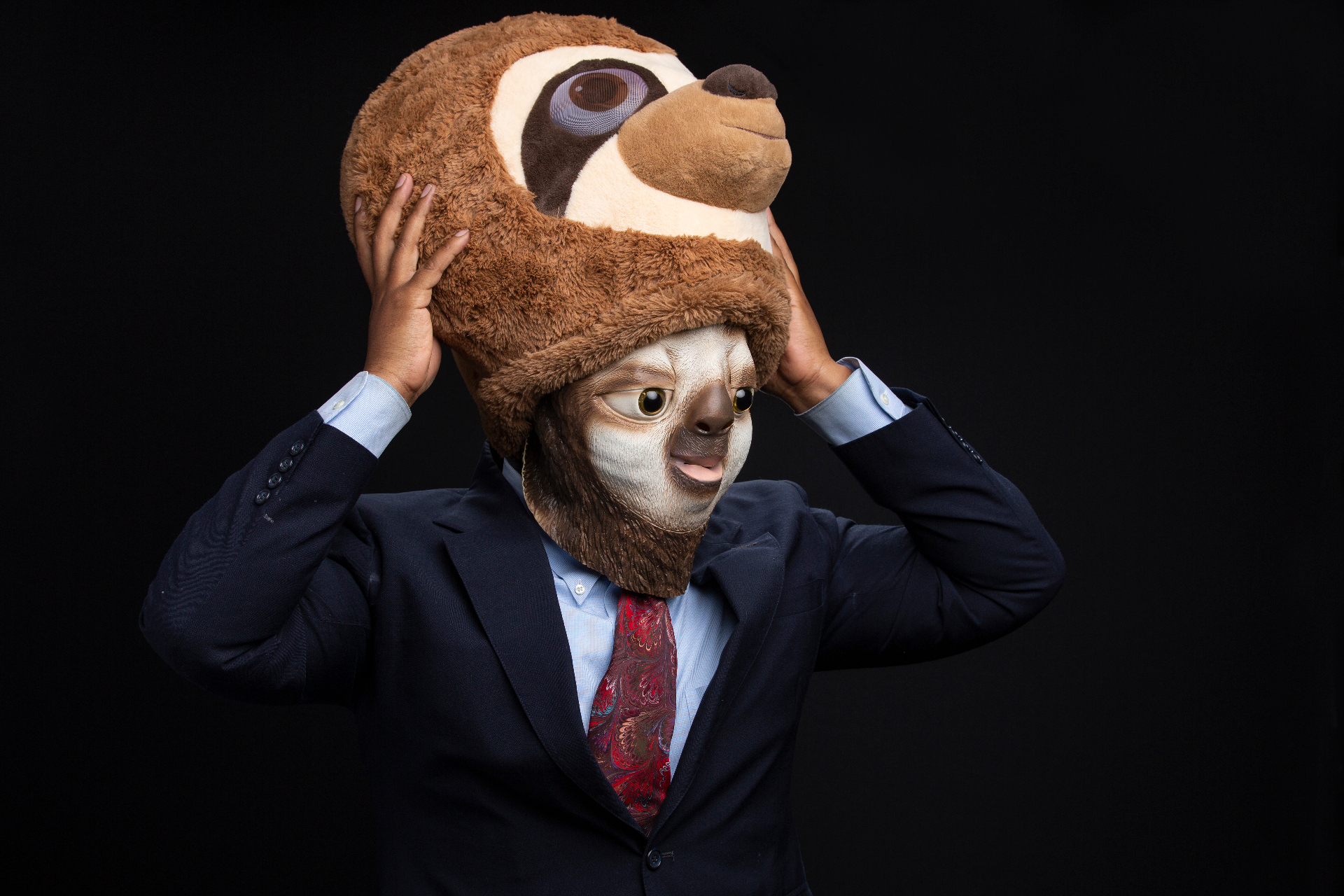 Behind the mask, briefly.